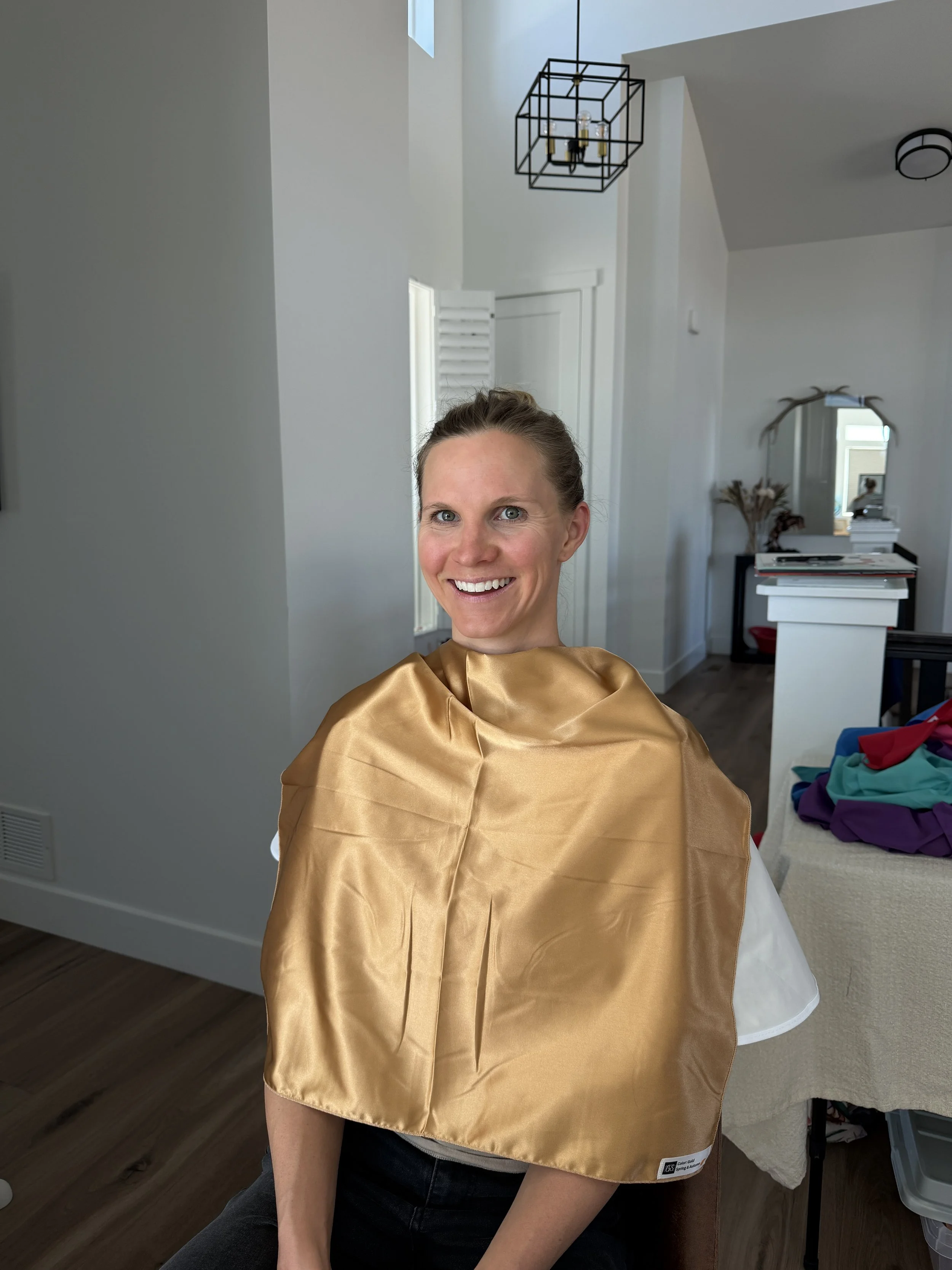 Ready to bring the magic of color to your next event? My Color Analysis Parties are the perfect addition to any girls' night, bridal shower, or family gathering. I bring the draping kit to your location for a session of discovery that fits perfectly into your schedule.